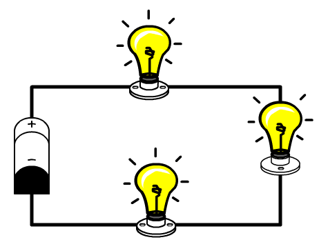 زمانی که مدار بسته میشود، الکتریسیته جریان پیدا میکند، در این صورت اگر دو لامپ را به یک باتری وصل کنید، و دو لامپ هم به هم دیگر وصل شوند، لامپها به صورت متوالی بسته شده اند. در مدار متوالی، جریان بر ابتدا به یک لامپ می رود و سپس به لامپ دیگر عبور می کند. شکل زیر یک مدار متوالی را نشان میدهد.