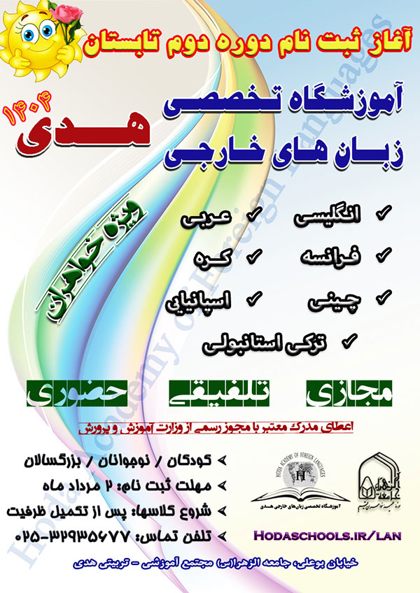 مدیر آموزشگاه تخصصی زبانهای خارجی هدی با بیان اینکه ثبت نام به صورت غیر حضوری انجام میشود، افزود: علاقمندان جهت ثبت نام و کسب اطلاعات بیشتر میتوانند به نشانی https://www.hodaschools.ir/lan/?app=content&catid=۰&itemid=1 مراجعه نمایند.