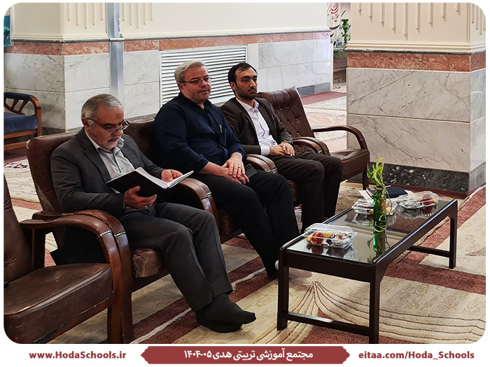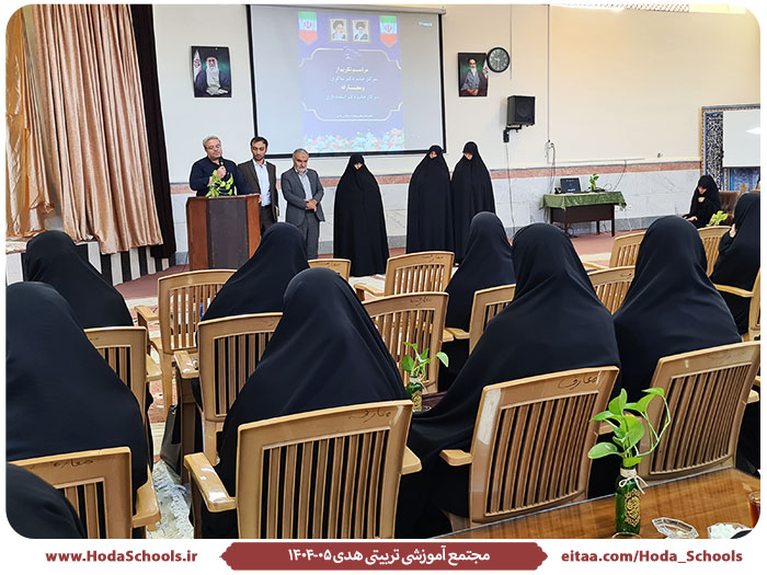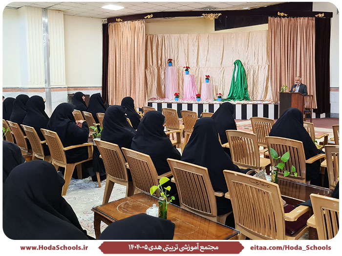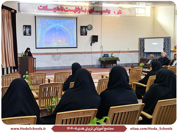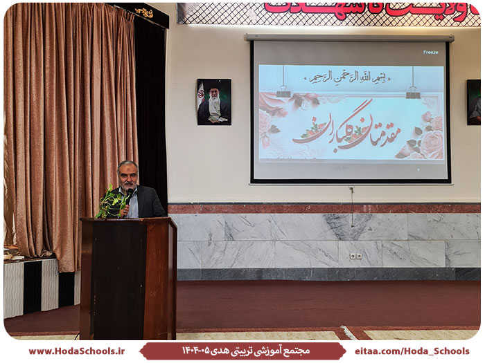 مدیر مجتمع هدی، خانم اسفندیاری را به عنوان مدیر جدید دبیرستان علوم و معارف اسلامی هدی، معرفی کرده و از سوابق تحصیلی و رزومه کاری ایشان کفت و در ادامه گزارشی از قبولیها و وضعیت درسی و آموزشی دانشآموزان پایهی دوازدهم در کل کشور ارائه داد و در مورد توزیع کتب درسی و اصلاحات انجام شده در کتب درسی رشتهی علوم و معارف اسلامی را بیان کرد.آقای کبیری در پایان صحبتهایشان، فرارسیدن هفتهی دفاع مقدس را تبریک گفت.