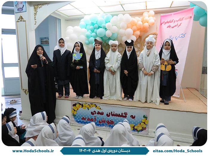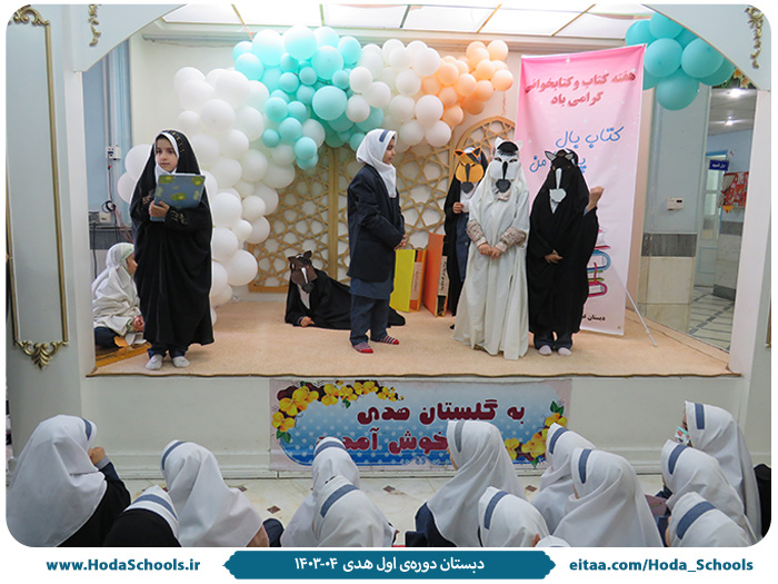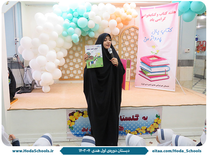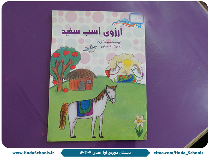 به گزارش مسئول کتابخانه، خانم نریمان، کتاب« آرزوی اسب سفید» در قالب اجرای نمایش با همکاری دانشآموزان معرفی شد. این کتاب داستان اسب خیلی خوبی است که به همه کمک میکند. یک روز جان خودش رو به خطر می اندازد تا جان یک اسب دیگر را از آتش نجات دهد و شب خواب اسب امام حسین-علیه السلام- ذوالجناح را میبیند. اسب سفید به ذوالجناح میگوید خوشا به حالت کاش من هم اسب امام زمان- عجل الله تعالی فرجه الشریف- بشوم. از آن روز به بعد کارهای خوب بیشتر میکند تا اسب امام زمانش شود. این کتاب به قلم خانم محبوبه آفرین نوشته شده است.