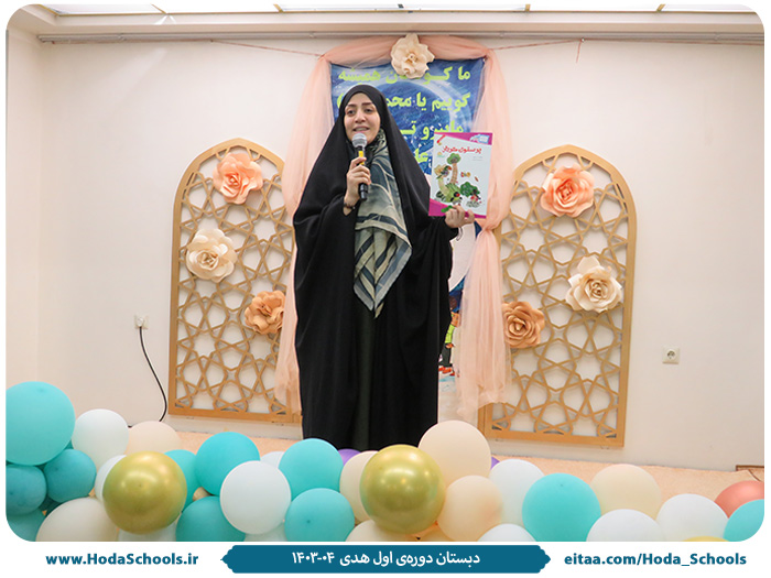 به گزارش مسئول کتابخانه، خانم نریمان، کتاب« پرستوی مهربان» در قالب اجرای نمایش با همکاری دانشآموزان معرفی شد. این کتاب به قلم خانم سیده معصومه موسوی برای آشنایی با امام زمان-عجل الله تعالی فرجه الشریف- نوشته و به همت انتشارات بنیاد فرهنگی حضرت مهدی موعود-عجل الله تعالی فرجه الشریف- منتشر شده است.