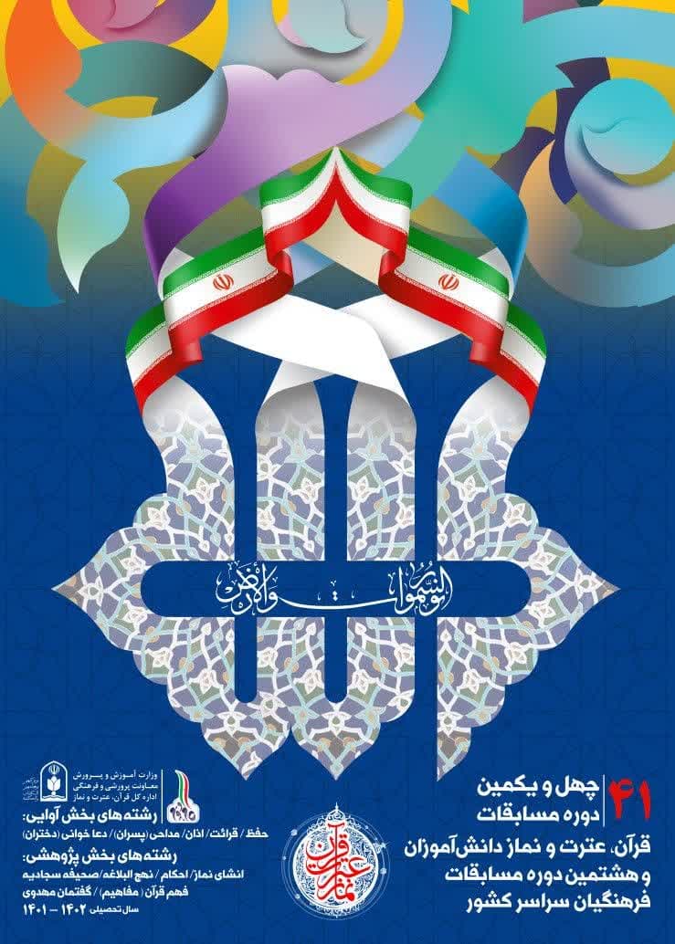 چهل و یکمین دورهی مسابقات قرآن، عترت و نماز دانشآموزان همزمان با آغاز هفته گرامیداشت قرآن، عترت و نماز در پانزدهم آذر ماه 1401 در مدارس سراسر کشور در رشته های زیر آغاز شد.