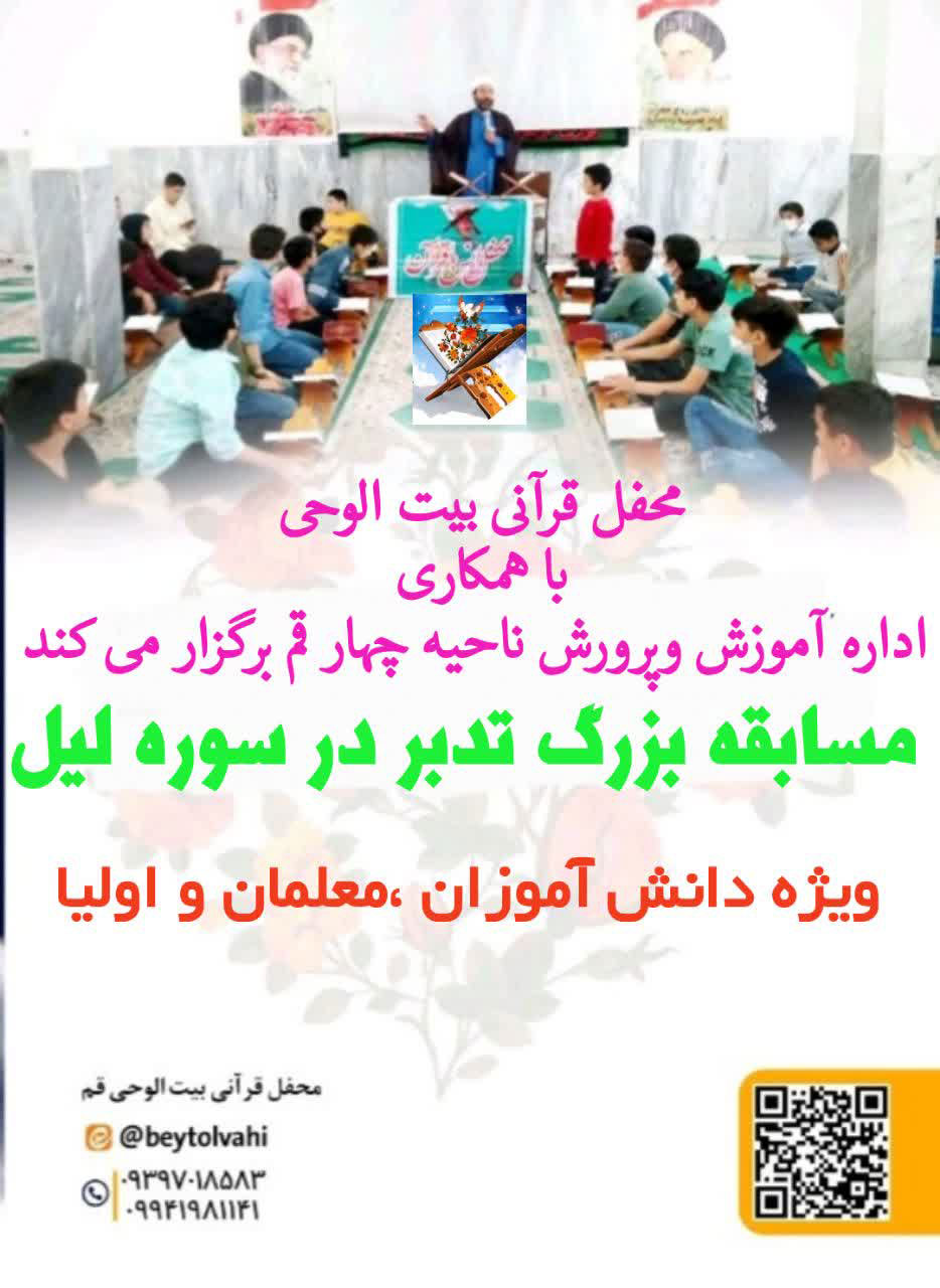 به گزارش واحد پرورشی، آزمون مسابقهی بزرگ تدبر در سوره لیل به صورت مجازی از ساعت14 تا 20 در روز جمعه 5 اسفندماه، برگزار میشود. به منظور شرکت در آزمون" مسابقهی بزرگ تدبر در سوره لیل" ،پیوند تصویر را فعال نمایید.