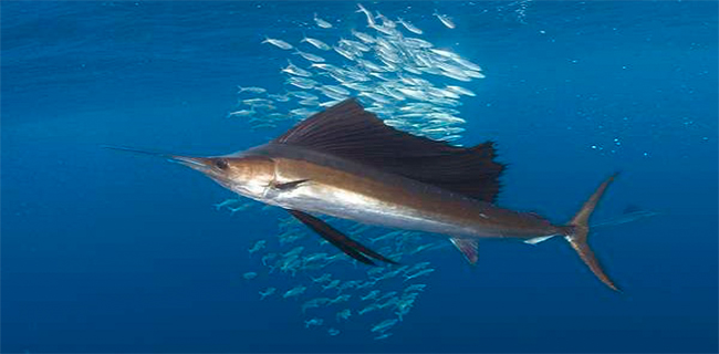 ماهی بادبانی میتواند با سرعت 80 کیلومتر در ساعت یعنی معادل سرعت یک ماشین در زیرآب حرکت کند.او بالههایش را به بدنش میچسباند و با پوزهی نوک تیزش مثل یک چاقو آب را میشکافد و به جلو میرود.