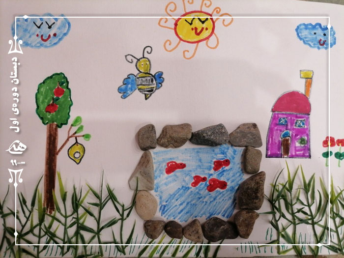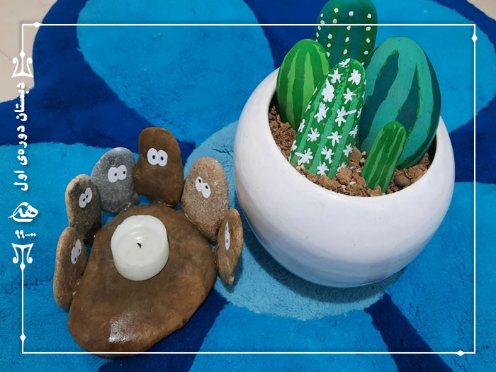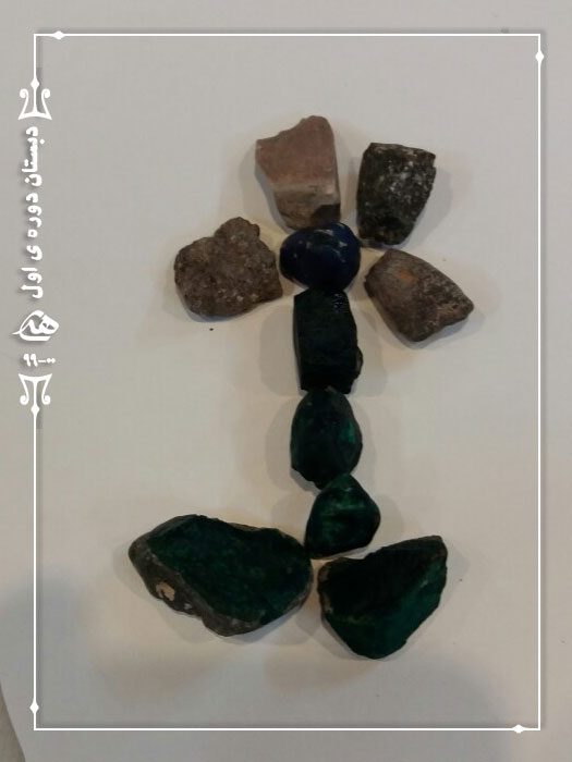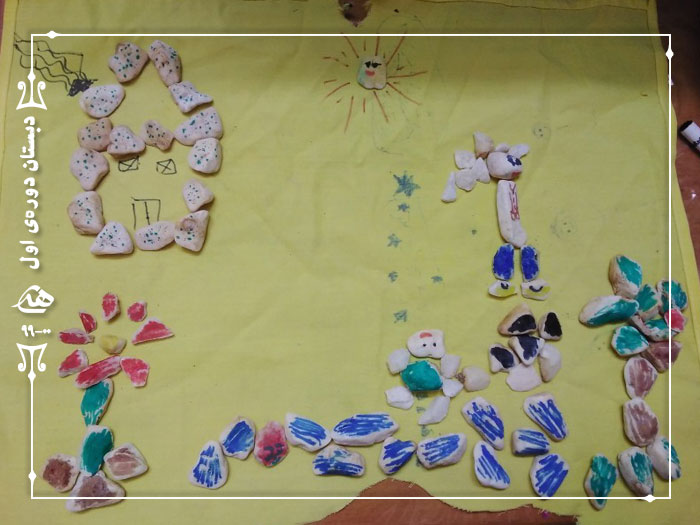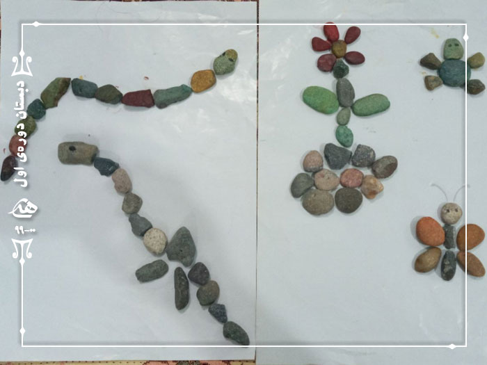 ساخت کاردستی با سنگ با هدف آشنایی با سنگ ها درس علوم کلاس شقایق- پایه ی اول-