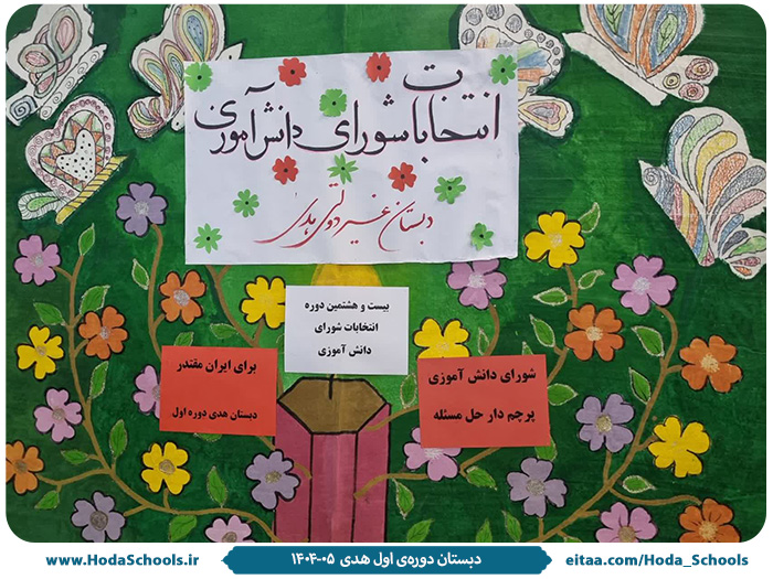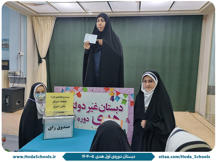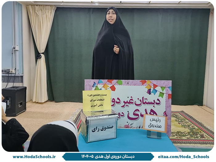 به گزارش خانم ابراهیمی، معاون پرورشی دبستان، روز سهشنبه 20 آبان ماه، بیستوهشتمین دورهی انتخابات شورای دانشآموزی، همزمان با سراسر کشور با شور و هیجان فراوان در دبستان برگزار شد. در این روز فضای مدرسه حالوهوای انتخاباتی داشت، سالن دبستان با شعار محوری «شورای دانش آموزی پرچمدار حل مسئله برای ایران مقتدر» و پوسترهای رنگارنگ کاندیداها آراسته شده بود. صدای گفتوگو و هیجان دانشآموزان نشان از شور انتخاباتی در مدرسه داشت.