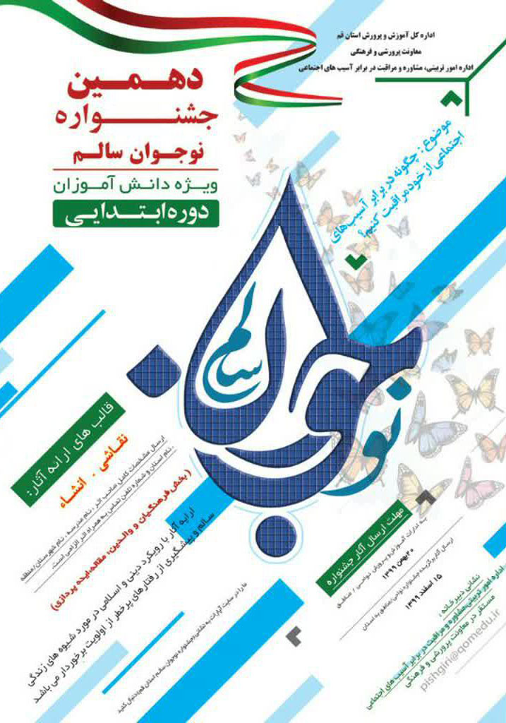 والدین گرامی دهمین جشنواره نوجوان سالم ویژه نوجوان دوره ی ابتدایی برگزار می شود . دانش آموزان می توانند آثار خود را در قالب نقاشی و انشاءدر پیام رسان بله به شناسه bayati_behdasht@ مربی بهداشت-خانم مراد بیاتی-تا 20بهمن ماه ارسال نمایید.