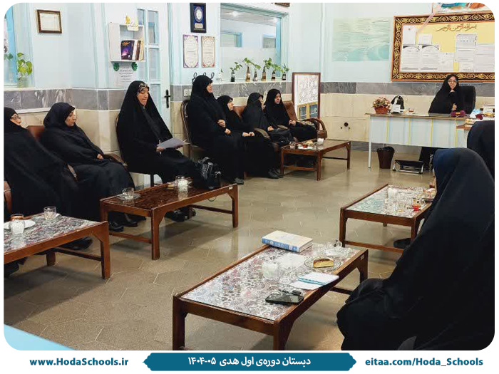 اولین جلسهی شورای آموزگاران روز یکشنبه شانزدهم شهریور ماه، با حضور مدیر آموزشگاه، خانم یزدانیفر، کارشناس آموزشی و پرورشی مجتمع آموزشی تربیتی هدی، خانم حاتمی، کادر اجرایی و آموزگاران در دفتر دبستان برگزار شد. جلسه با تلاوت آیاتی از کلام الله مجید آغاز شد. در ادامه خانم یزدانیفر ضمن عرض خیر مقدم، تبریک هفتهی وحدت و ولادت پیامبر اکرم - صلیاللهعلیهوآلهوسلم - و حضرت امام صادق - علیهالسلام - با بیان حدیثی صحبتهای خود را پیرامون جلسه آغاز کرد. در این جلسه دربارهی پروژهی مهر، روند اجرایی مدرسه تراز سند تحول بنیادین آموزش و پرورش، برنامهریزی مراسم روز شکوفهها، فعالیتهای فوق برنامه، طرح زندگی با آیهها و سایر برنامههای آموزشی و پرورشی آموزشگاه نکاتی بیان شد.