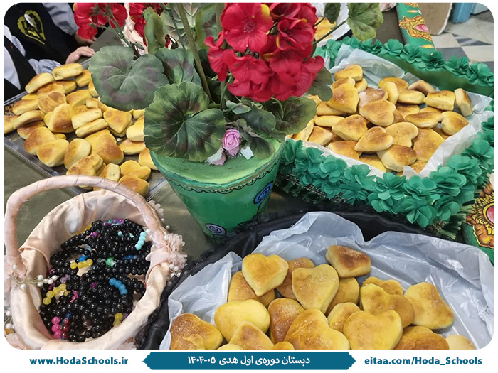 مادران مهربان کلاس دوم نسرین با نیتی خالص و عشقی ناب، زحمت پذیرایی را بر عهده گرفتند و با سلیقهای زیبا، نان قندیهای قلبی شکل را برای بچهها آماده کردند. شیرینیای که با محبت و اخلاص، طعم عشق به حضرت زهرا -سلام الله علیها- را در دلها نشاند. در کنار پذیرایی، هدیهی فرهنگی ویژهای نیز برای بچهها تدارک دیده شده بود. دستبندهای دخترانهی ظریفی که لبخند و شادی را بر چهرهی بچهها نشاند و یادگاری ماندگار از این روز معنوی شد.