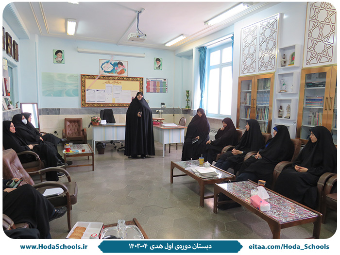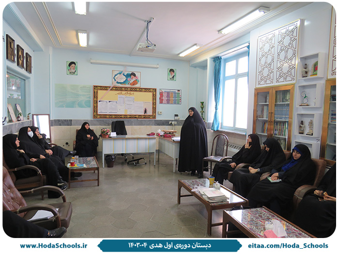 به گزارش معاون پرورشی دبستان، خانم ابراهیمی، جلسهی حلقهی صالحین با حضور مدیر، معاونان و آموزگاران در دفتر دبستان برگزار شد. جلسه با قرائت قرآن و بیان احکام دربارهی روزهی قضا شروع شد. سپس مربی احکام، خانم وافری، روایتی از امام سجاد- علیه السلام- دربارهی گناهانی که نعمتها را تغییر میدهند بیان کرد. ایشان اشاره کرد که بنا بر فرمودهی امام سجاد-علیه السلام- ظلم و ستم به مردم، ترک عادت نیک، ترک امر به معروف و کفران نعمت از گناهانی هستند که نعمت را تغییر میدهند. در ادامه مربی پرورشی، خانم قراباغی دربارهی کم حرفی و پرحرفی که از جنود عقل و جهل هستند صحبت کرد.
