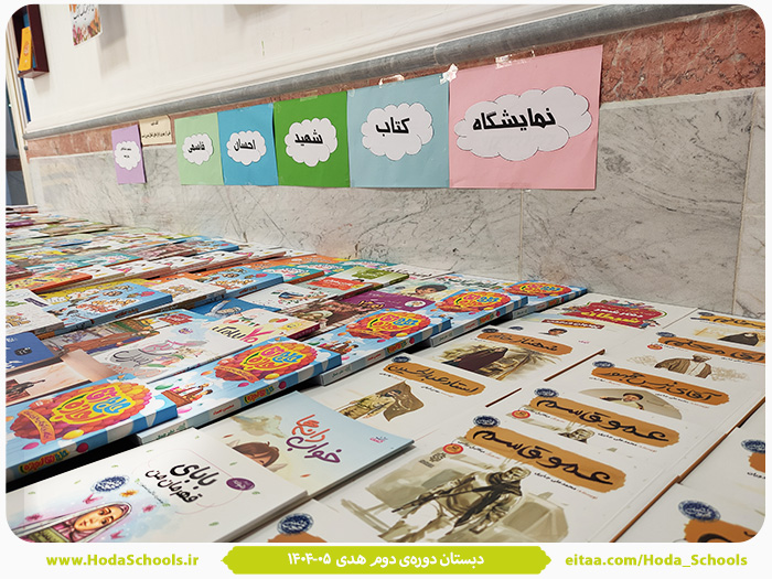 به مناسبت هفتهی کتاب و کتابخوانی، نمایشگاه کتاب شهید احسان قاسمی، شهید شاخص دبستان در کتابخانهی دبستان دورهی دوم هدی برگزار شد.