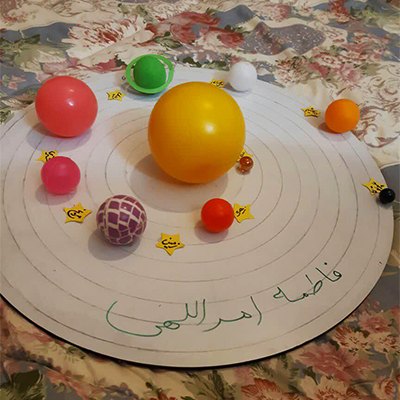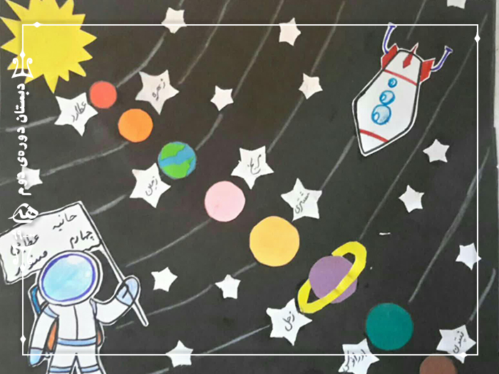 دانشآموزان پایهی چهارم -کلاس صنوبر- با توجه به درس آسمان شب کتاب علوم پس از آشنایی با سیارات مختلف با استفاده از کاغذ و مقواهای رنگی، ماکت و کاردستی منظومهی شمسی را تهیه کرده و تصاویر این ماکتهای زیبا را برای ما ارسال کردند.