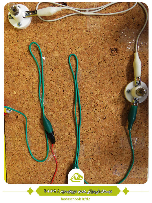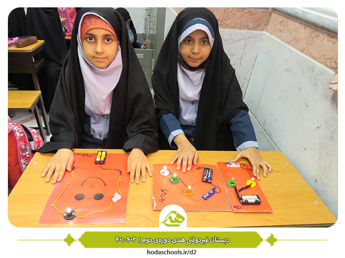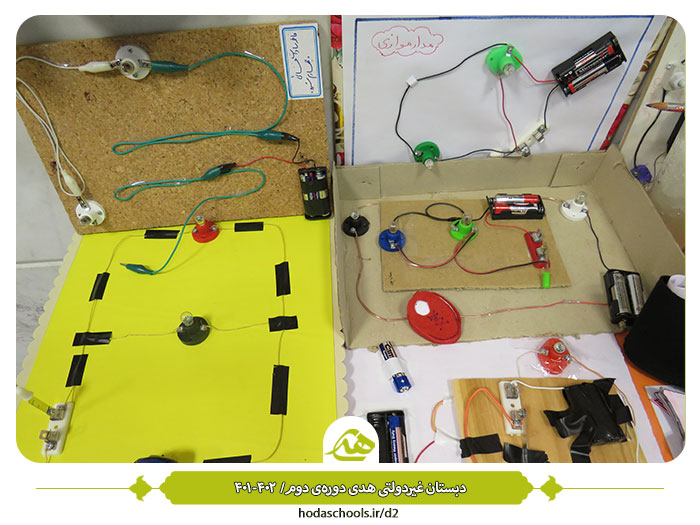 دانشآموزان پایهی چهارم با راهنمایی آموزگاران خود، مدارهای الکتریکی ساده ساختند و با مفهوم و تفاوت مدارهای موازی و متوالی آشنا شدند. گروهی از دانشآموزان با استفاده از سیم روکشدار، باتری، چسب نواری برق، پایهی لامپ و لامپ، مدار موازی ساخته و گروهی دیگر مدار متوالی ساختند. دانشآموزان متوجه شدند که در مدار موازی اگر یکی از لامپها بسوزد، لامپهای دیگر روشن میمانند ولی در مدار متوالی اینطور نیست؛ یعنی اگر یکی از لامپها دچار مشکل شود، لامپهای دیگر کار نمیکنند.