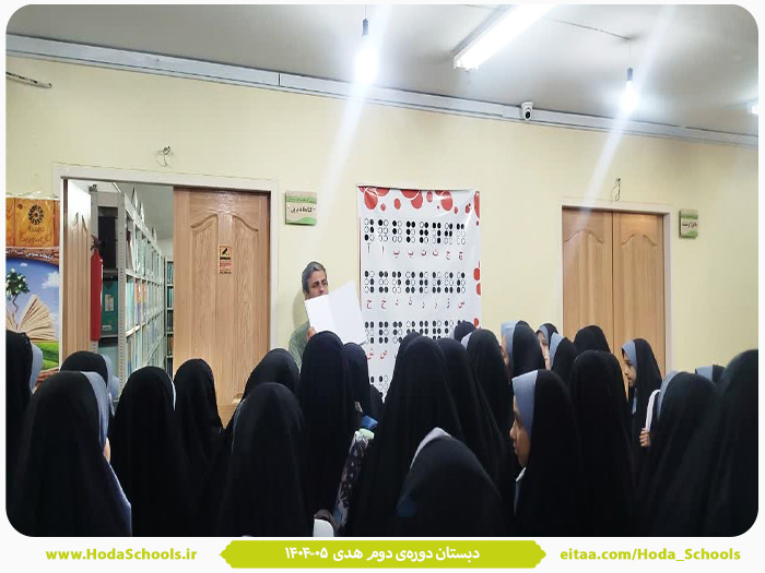 در بخش نابینایان نیز آقای عبدلی به معرفی کتابهای ویژهی نابینایان پرداخته و دانشآموزان را با خط بریل و شیوهی مطالعهی افراد نابینا آشنا کردند.