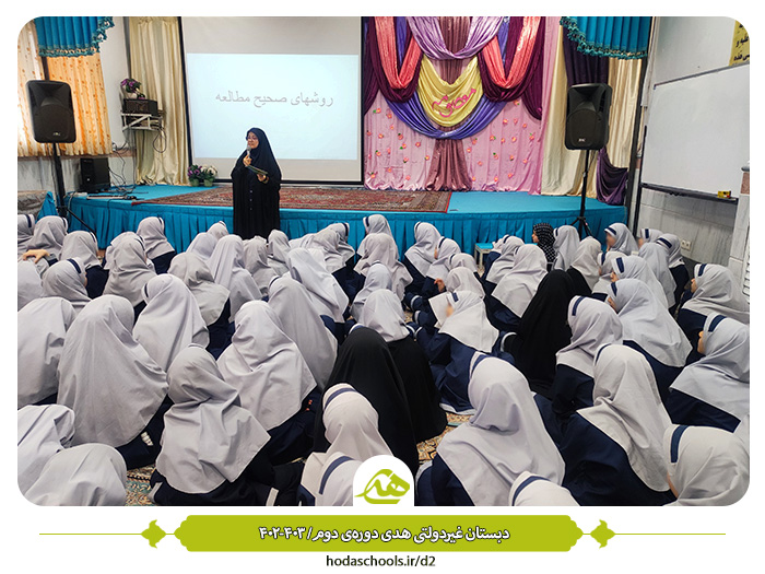 به همت خانم هاشمیان،مشاور دبستان، جلسهی مشاوره با موضوع «روشهای صحیح مطالعه» روز دوشنبه بیست و چهارم اردیبهشت ماه 1403 در صبحگاه برگزار گردید.