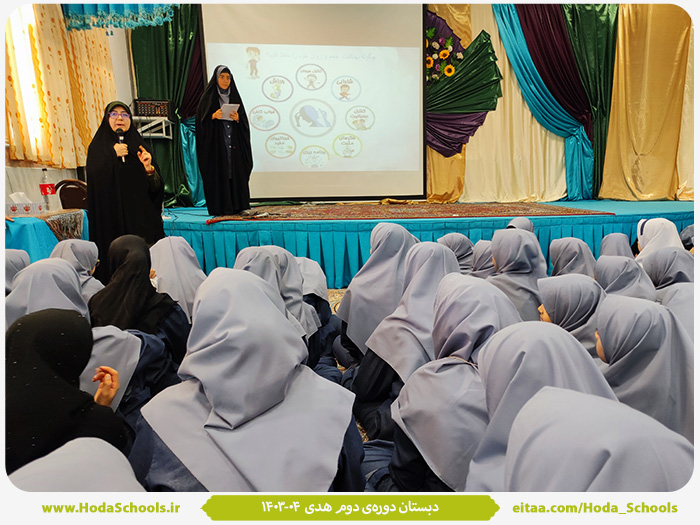 نشست امروز با قرائت قرآن با صدای خانمها سارا سادات حکیم و ریحانه سادات حسینی آغاز شد. سپس مشاور دبستان، خانم هاشمیان، صحبتهای خود را به این صورت آغاز کرد: همهی ما دوست داریم همیشه شاد و سالم باشیم اما گاهی با انتخابهای نادرست هم شادی و هم سلامتیمان را به خطر میاندازیم. خانم هاشمیان هر یک از موارد را با اجرای نمایش به همت دانشآموزان توضیح دادند.