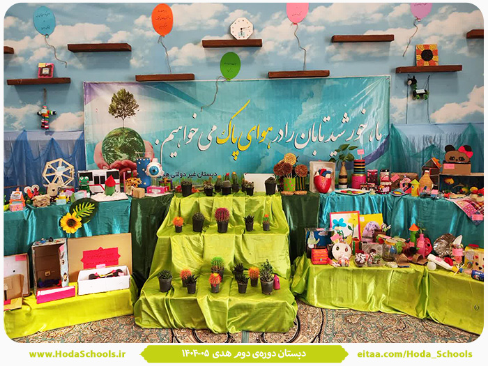 همچنین، نمایشگاه دستسازههای بازیافتی دانش آموزان بر پا شده و زنگ هوای پاک نیز با حضور آقای شریفی معاونت مدیریت پسماند و آقای کبیری معاونت پیشتیبانی و تامین نیروی انسانی مجتمع هدی نواخته شد.
