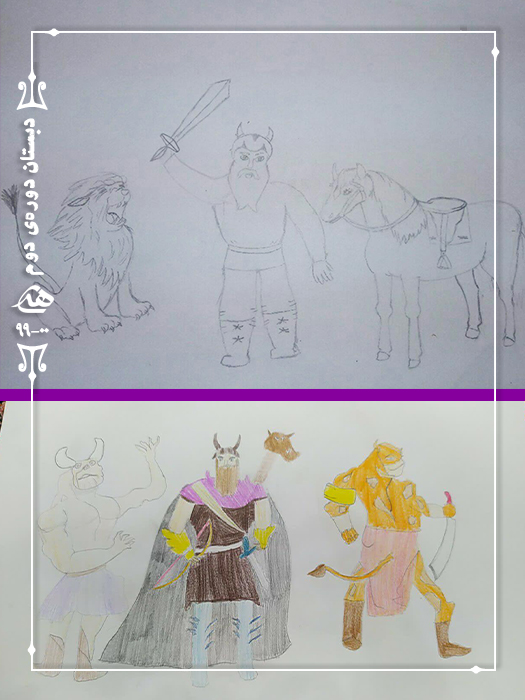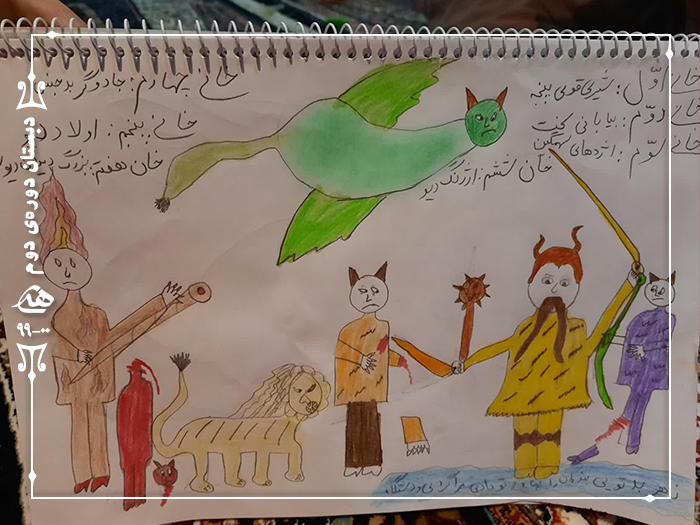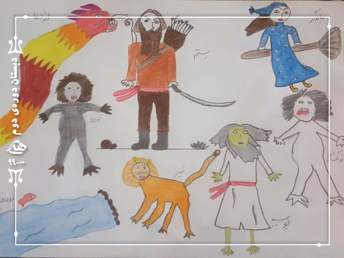 با توجه به درس هفت خان رستم کتاب فارسی، دانشآموزان پایهی ششم -کلاس ارکیده- با خلاقیت خود هفت خان رستم را به تصویر کشیدند و تصاویر نقاشیهای خود را برای ما ارسال کردند.