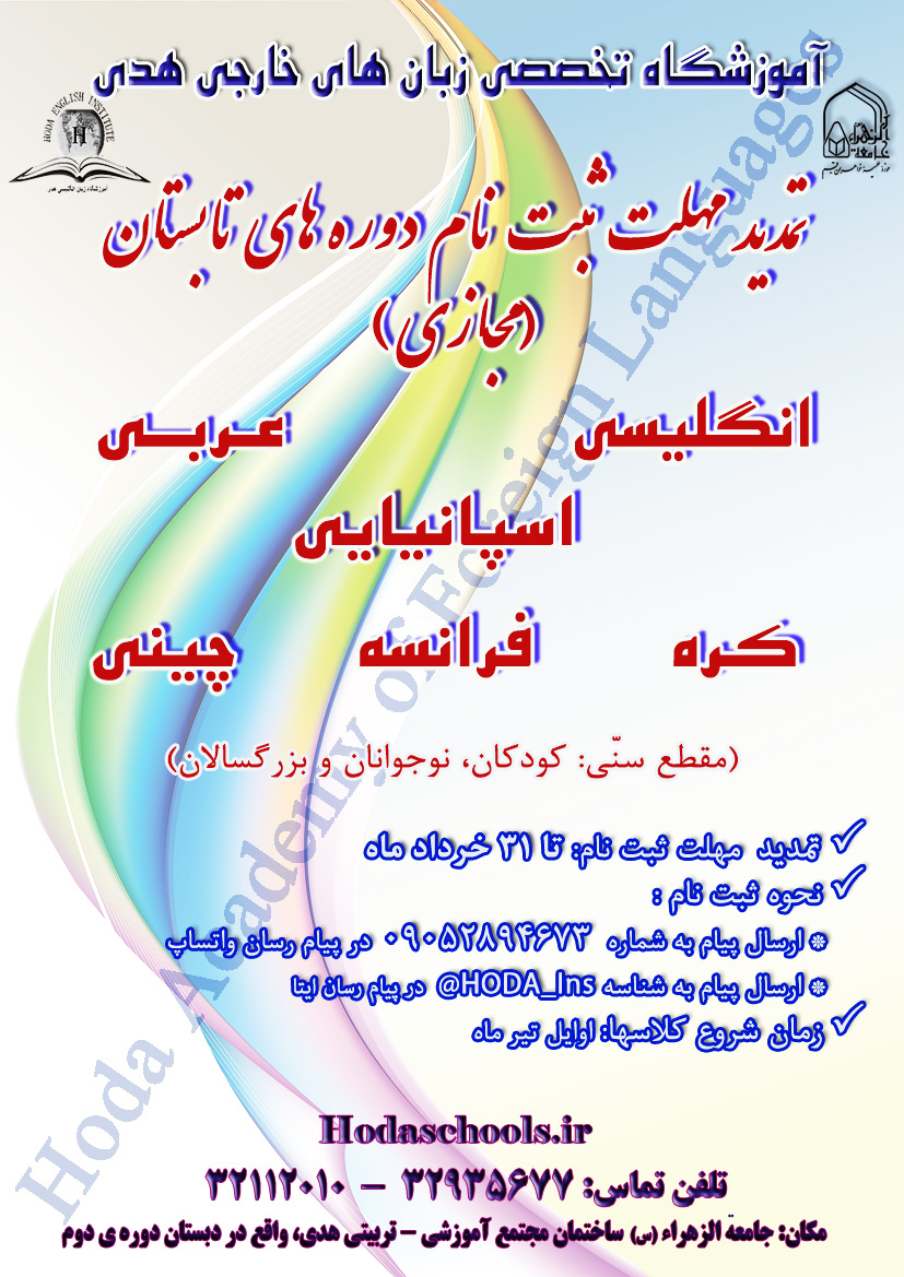 این آموزشگاه مهلت ثبت نام را تا تاریخ 31 خرداد ماه تمدید می نماید.