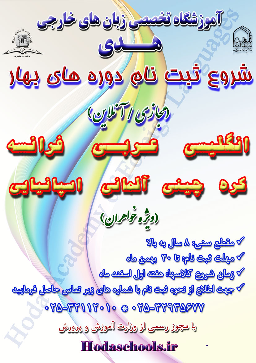 آموزشگاه تخصصی زبانهای خارجی هدی از آغاز ثبت نام ترم بهار ویژه خواهران در رده سنی 8 سال به بالا خبر داد.