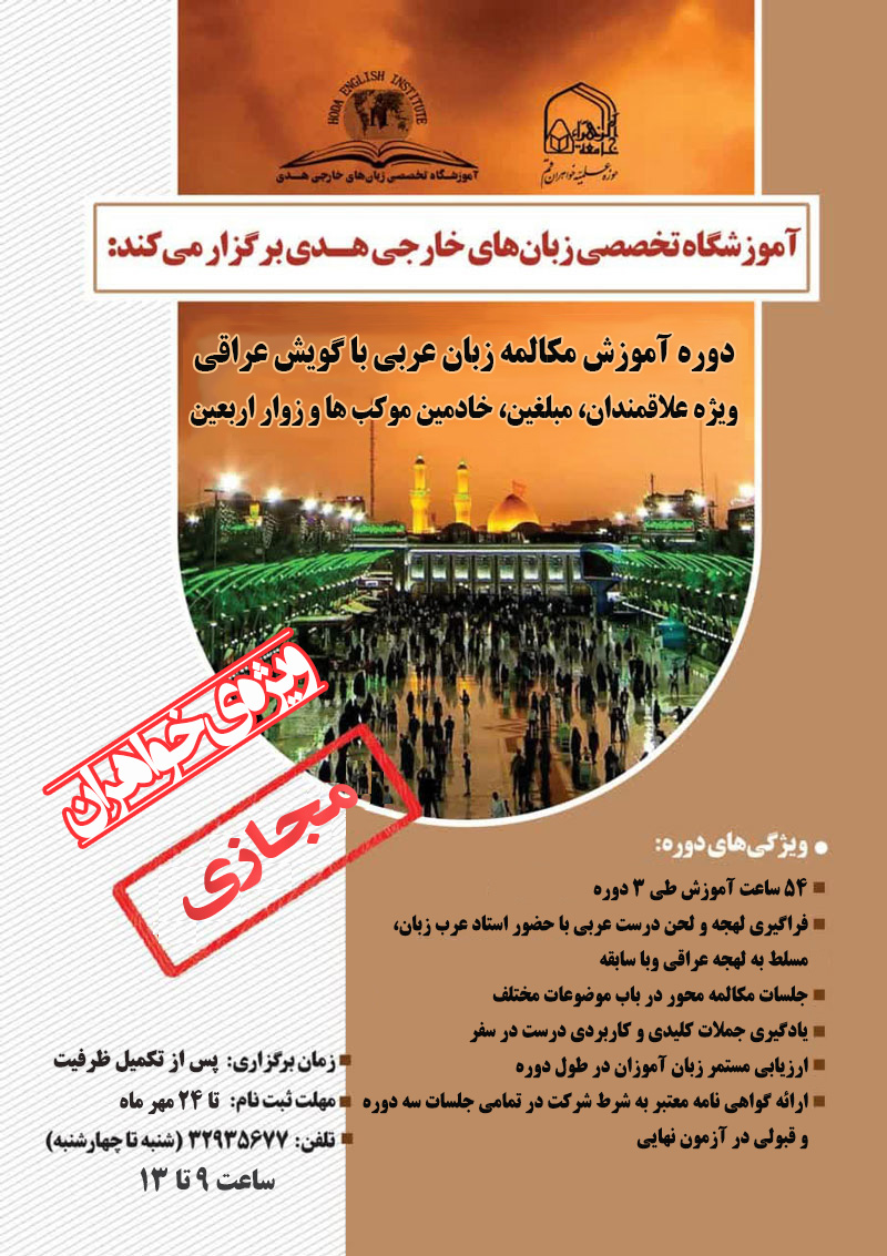 به گزارش روابط عمومی، دوره تخصصی مکالمه زبان عربی با لهجه عراقی در پاییز 1403 به همت آموزشگاه تخصصی زبانهای خارجی هدی وابسته به جامعة الزهرا(س) برگزار میشود.