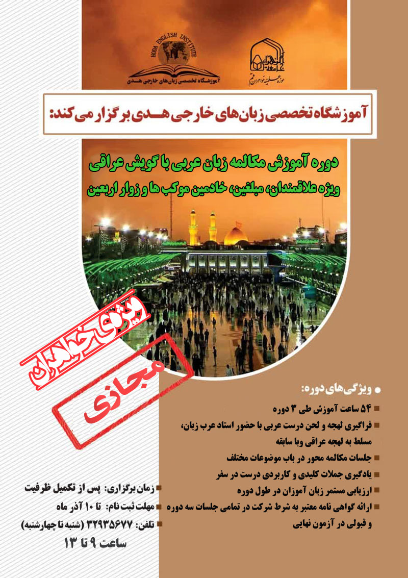 به گزارش روابط عمومی، دوره تخصصی مکالمه زبان عربی با لهجه عراقی در زمستان 1403 به همت آموزشگاه تخصصی زبانهای خارجی هدی وابسته به جامعة الزهرا(س) برگزار میشود.