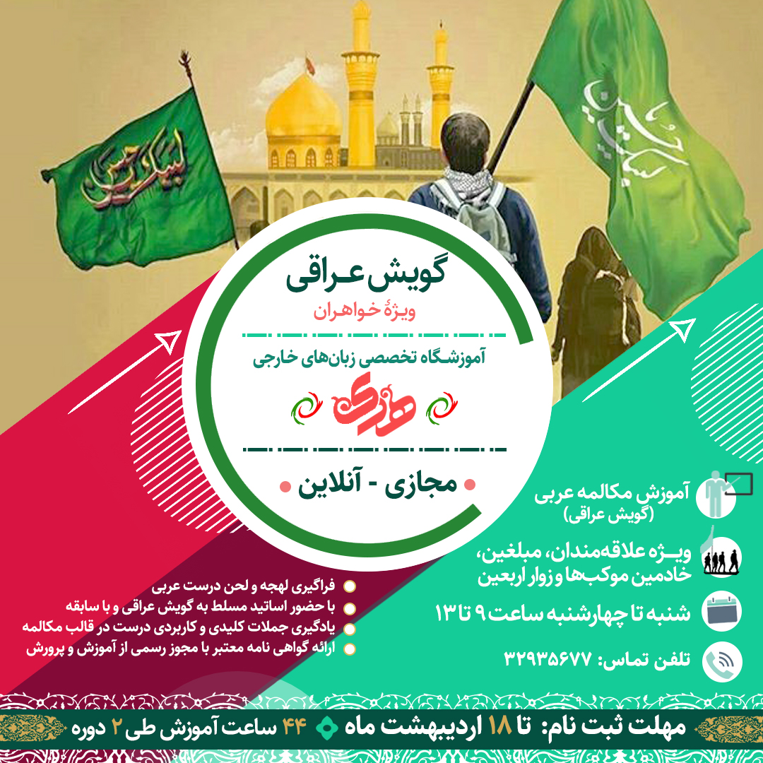 دوره تخصصی مکالمه عربی (گویش عراقی) ویژه علاقه مندان، مبلغان، خادمان موکبها و زوار اربعین به صورت مجازی و آنلاین برگزار میشود.