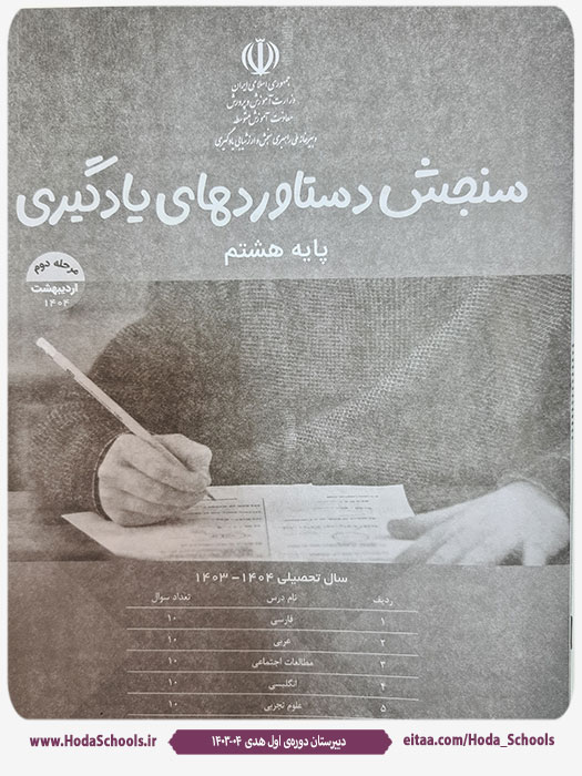 طرح ملی سنجش دستاوردهای یادگیری دانشآموزان متوسطهی اول روز دوشنبه هشتم اردیبهشت ماه 1404 ویژهی همهی دانشآموزان، در دبیرستان دورهی اول هدی برگزار شد.