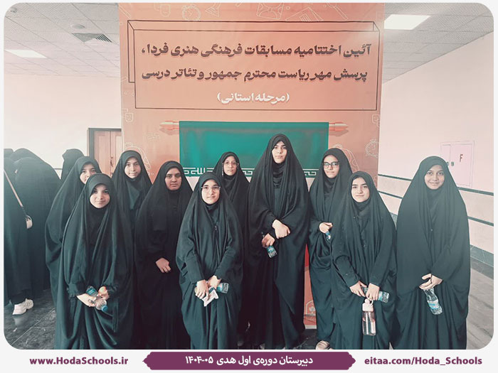 به گزارش خانم محمدخواه، معاون پرورشی مدرسه، دانشآموزان برگزیدهی مسابقات فرهنگی هنری فردا در رشتههای نمایشنامهخوانی، نقاشی همگانی، تصویر سازی، گلیم بافی، نقاشی خط، معرق کاری، پته دوزی و ...روز سهشنبه 29 مهرماه 1404 در مراسم تجلیل از برگزیدگان مسابقات فرهنگی هنری فردا واقع در اردوگاه 15 خرداد حضور پیدا کردند.
