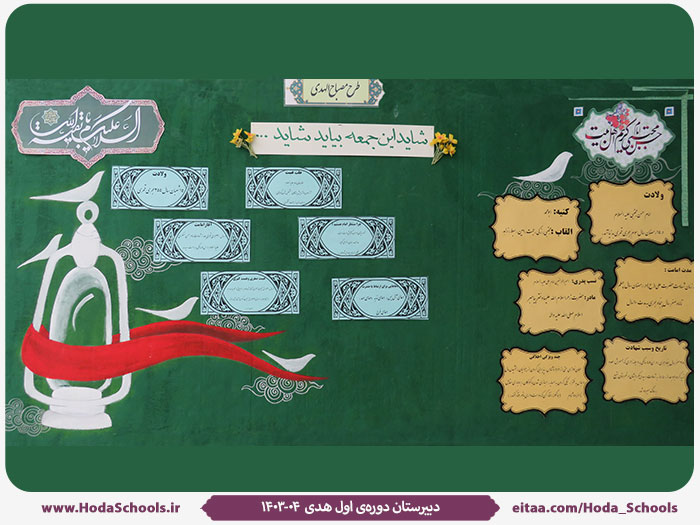 به گزارش مربی پرورشی مدرسه، خانم محمدخواه، تابلوی مصباحالهدی با موضوع «آشنایی دانشآموزان با سیرهی امام دوم شیعیان، امام حسن مجتبی -علیه السلام-» به عنوان کریم اهل بیت و تبیین زندگی سراسر جهاد و تلاش این امام همام به روز شد. همچنین طبق روال سالهای گذشته، بخشی از این تابلو به تبیین زندگی امام دوازدهم شیعیان، امام زمان -عجل الله تعالی فرجه الشریف- می پردازد.