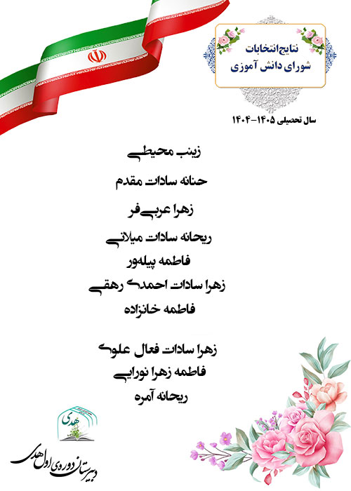 به گفتهی معاون پرورشی مدرسه، خانم محمدخواه، اسامی منتخبین شورای دانشآموزی به ترتیب آراء ماخوذه به شرح زیر اعلام شد: