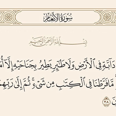 «و ما من دابة فی الارض و لا طئر یطیر بجناحیه الا امم امثالکم ما فرطنا فی الکتـب من شیء ثم الی ربهم یحشرون»«و هیچ جنبندهاى در زمین و نه ...
