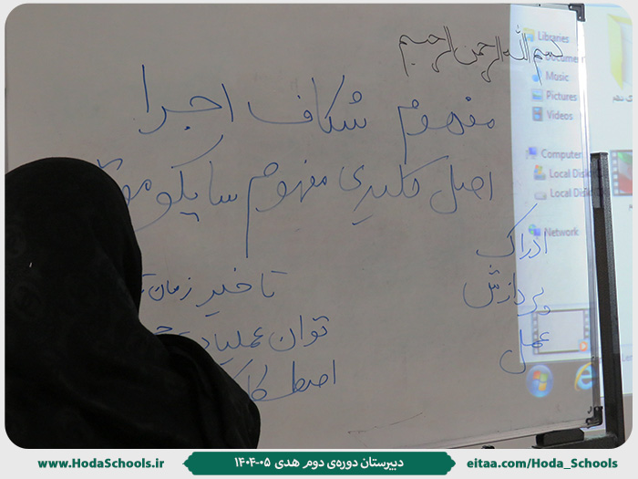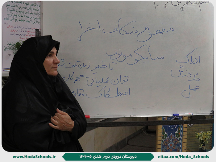به گزارش خانم تمیمی، مشاور دبیرستان هدی دورهی دوم، به مناسبت هفتهی بهداشت روان نشستی با موضوع دلیل شکست در برنامهها، روز یکشنبه 4 آبان در نمازخانهی آموزشگاه برگزار شد.