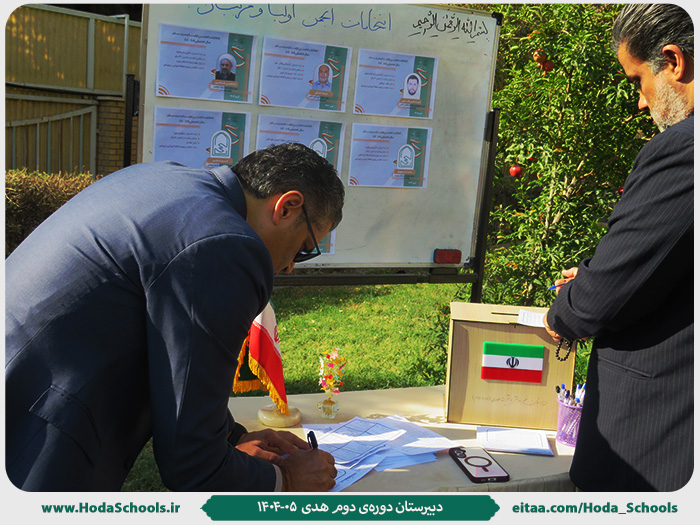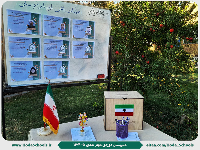 به گزارش خانم فلاحیان، معاون پرورشی دبیرستان دورهی دوم هدی، انتخابات انجمن اولیا و مربیان ویژهی اولیا دانشآموزان پایهی دهم روز چهارشنبه 23 مهرماه 1404 در حیاط آموزشگاه برگزار شد.