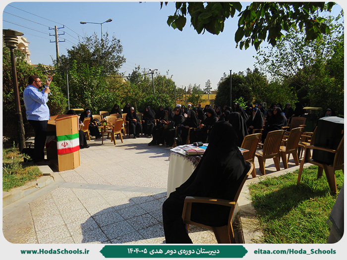 خانم خسروی مدیر آموزشگاه، ضمن خیرمقدم و قدردانی از حضور اولیا گرامی، نکات لازم دربارهی مسائل آموزشی-تربیتی بیان کردند.
