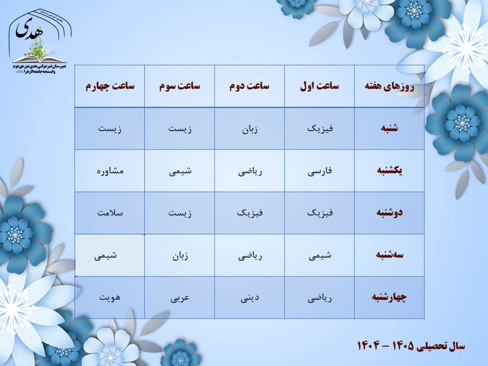 برنامهی هفتگی کلاس دوازدهم تجربی