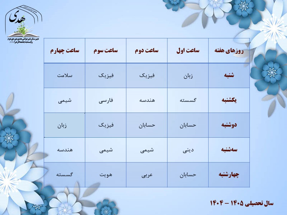 برنامهی هفتگی کلاس دوازدهم ریاضی