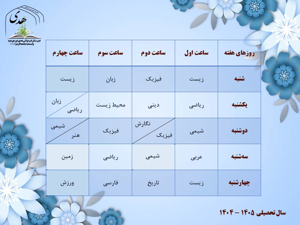 برنامهی هفتگی کلاس یازدهم تجربی یک