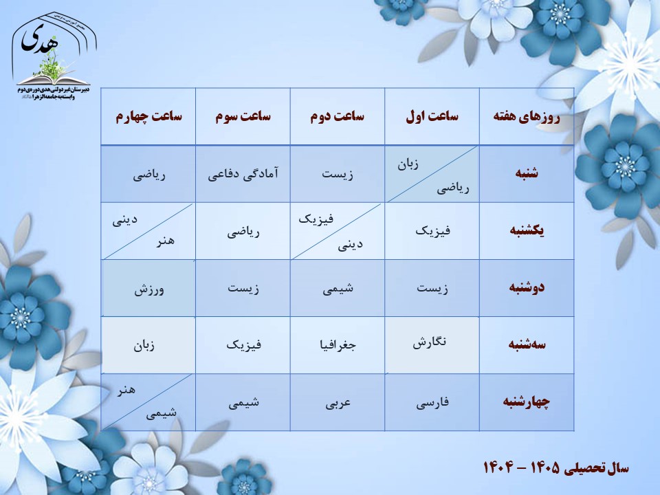 برنامهی هفتگی کلاس دهم تجربی 1