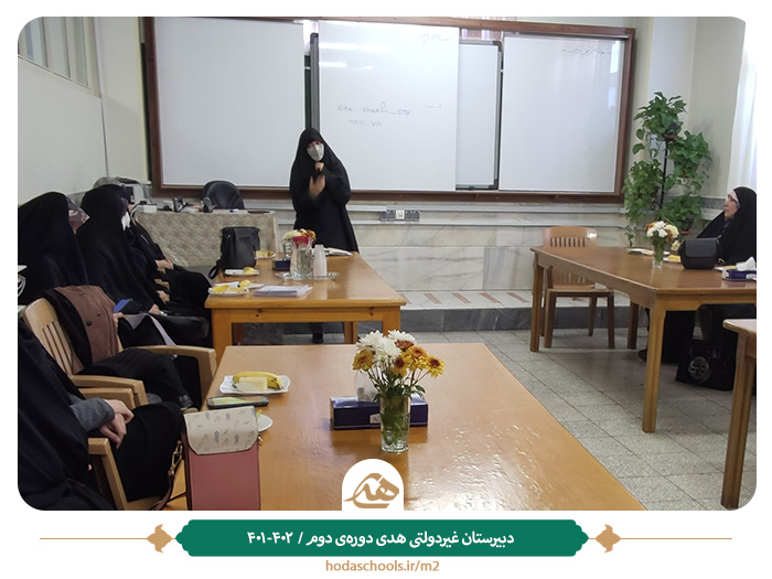 خانم خسروی مدیر دبیرستان، پس از تبریک میلاد حضرت فاطمه زهرا -سلام اللهعلیها- و روز مادر، نکاتی پیرامون هماهنگیهای آموزشی و تربیتی شروع ترم جدید بیان نمودند.