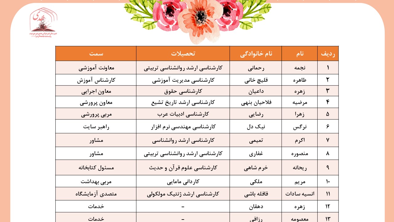 کادر اجرایی دبیرستان غیردولتی هدی دورهی دوم