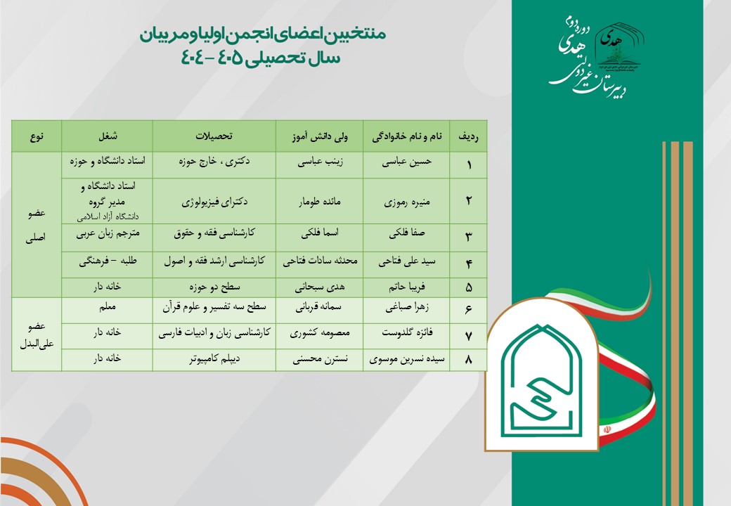 اعضای انجمن اولیا و مربیان دبیرستان غیردولتی هدی دورهی دوم
