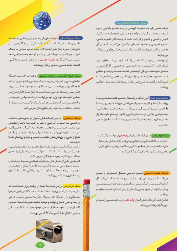 علم در کنار سایر رشتهها طراحی شده است. در این لیگ دانشآموزان در مقطع