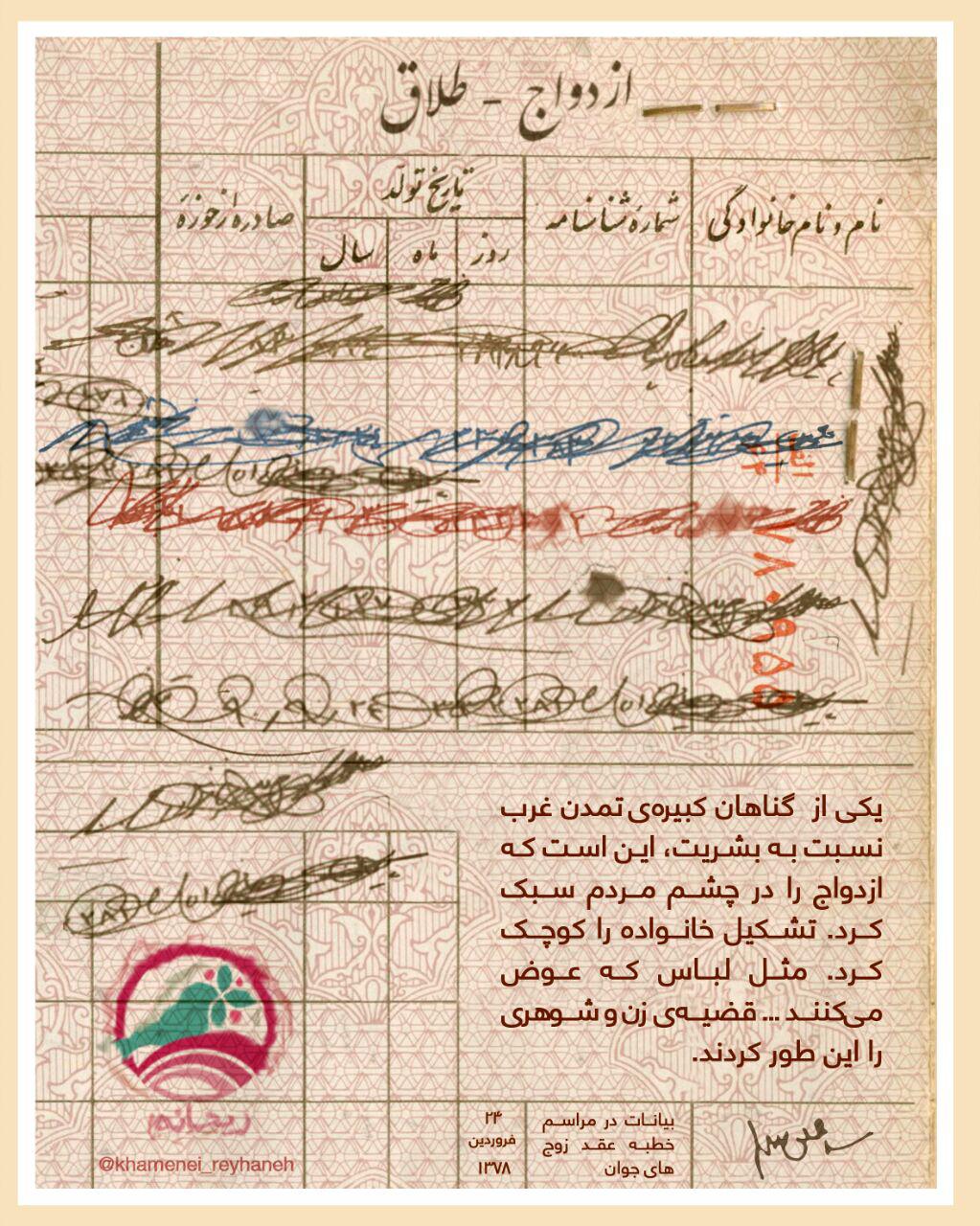 بیانات رهبر انقلاب در مراسم خطبه عقد زوج های جوان؛ ۷۸/۱/۲۴
