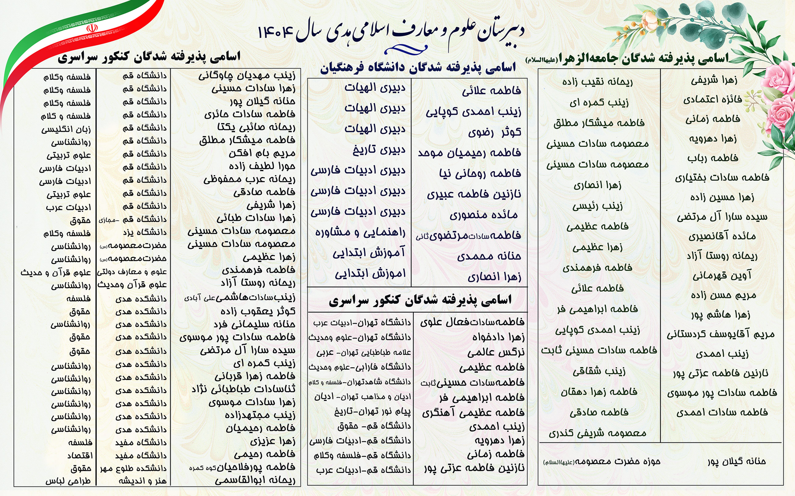 پذیرفتهشدگان جامعه الزهراء-سلاماللهعلیها- و کنکور سراسری 1404