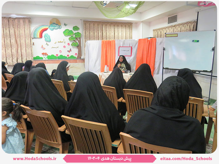 در این جلسه خانم جهازی مطالبی در مورد «آمادگی نوآموزان برای ورود به پایهی اول» برای مادران مطرح کرد.