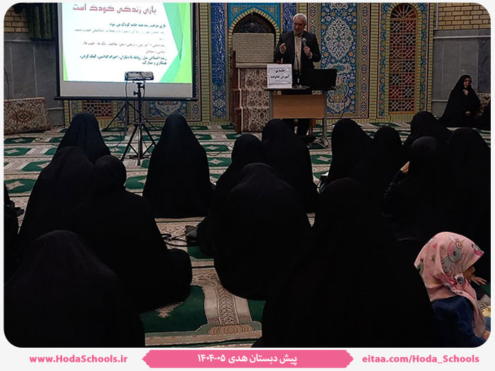 به گزارش خانم اویسی، معاون آموزشی کودکستان، اولین جلسهی آموزش خانواده روز چهارشنبه 30 مهرماه 1404 با حضور آقای عباسینیا، در حسینیهی امام خمینی -رحمتاللهعلیه- برگزار شد. جلسه با تلاوت آیاتی از کلامالله مجید به همت نوآموزان کلاس مهتاب (مربی خانم سیدی) آغاز شد. در این جلسه آقای عباسینیا نکاتی را پیرامون بازی و رشد هیجانی کودکان برای مادران مطرح کرد.