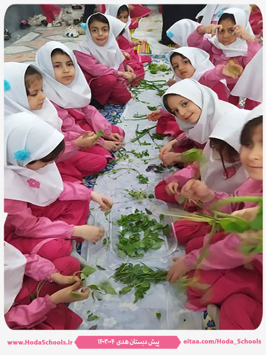 به گزارش معاون پرورشی پیش دبستان هدی، خانم حسینپور، نوآموزان در طرح مهارت سبزی پاک کردن روز دوشنبه یکم اردیبهشتماه 1404 در حیاط پیشدبستان شرکت کردند. این طرح با هدف تقویت مهارت دست ورزی، تقویت ماهیچههای انگشتی و عضلات ظریف دست، افزایش تمرکز، تقویت مهارتهای دخترانه و خانهداری برگزار شد. در این طرح سبزیها با کمک نوآموزان پاک شد. همچنین نوآموزان با شغل سبزی فروشی و انواع سبزی و خواص آن آشنا شدند.