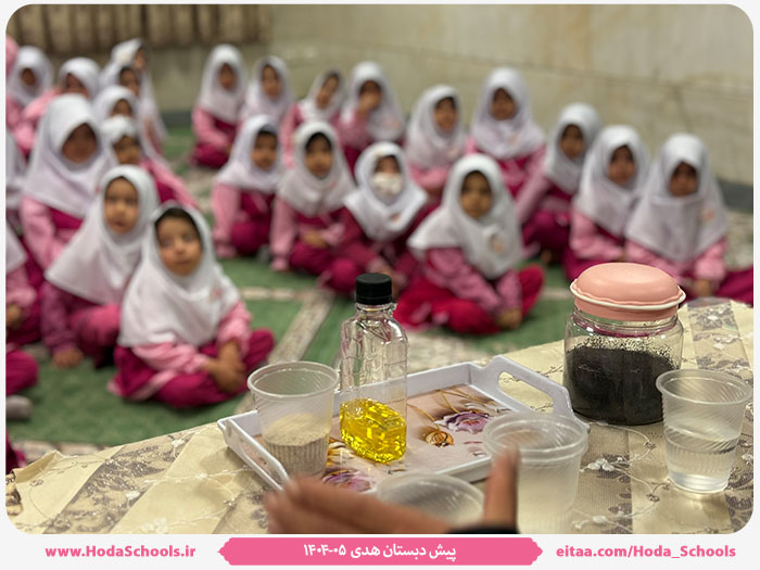 به گزارش واحد آموزش آموزشگاه، آزمایش محلول و نامحلول با هدف معرفی مفاهیم اولیه “محلول” و “نامحلول” به کودکان از طریق فعالیتهای عملی و مشاهدهی مستقیم در پیش دبستان هدی انجام شد.