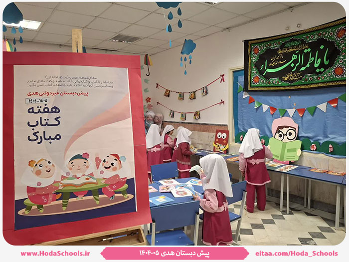 به گزارش خانم حسین پور، معاون پرورشی، به مناسبت هفته ی کتاب و کتابخوانی روز شنبه 24 آبانماه 1404 نمایشگاه کتاب در کودکستان هدی برپا شد. در این نمایشگاه مجموعهای از کتابهای آموزنده، داستانی، شعر، دینی و علمی ویژه گروه سنی پیشدبستانی به نمایش گذاشته شد.
